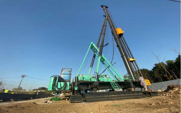 江北河道排口整治工程--施工現(xiàn)場(chǎng)三軸攪拌機(jī)